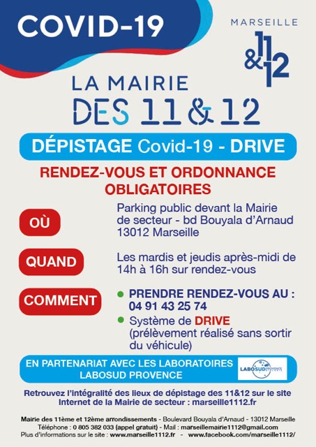 Un Dépistage Covid-19 Drive est possible à la Mairie de Secteur 11/12